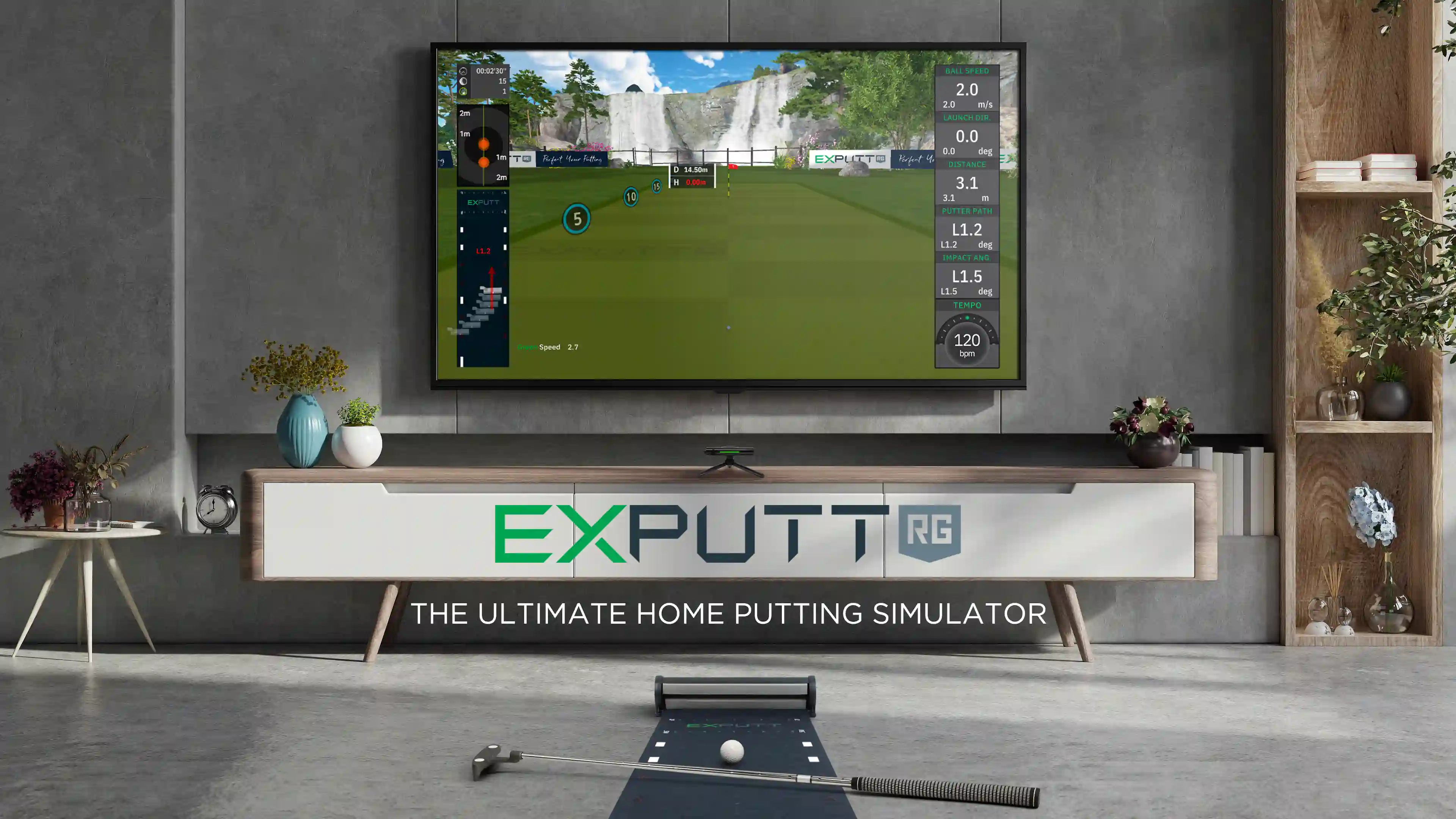 Simply plug in the ExPutt using the power cable and HDMI cable for your TV.