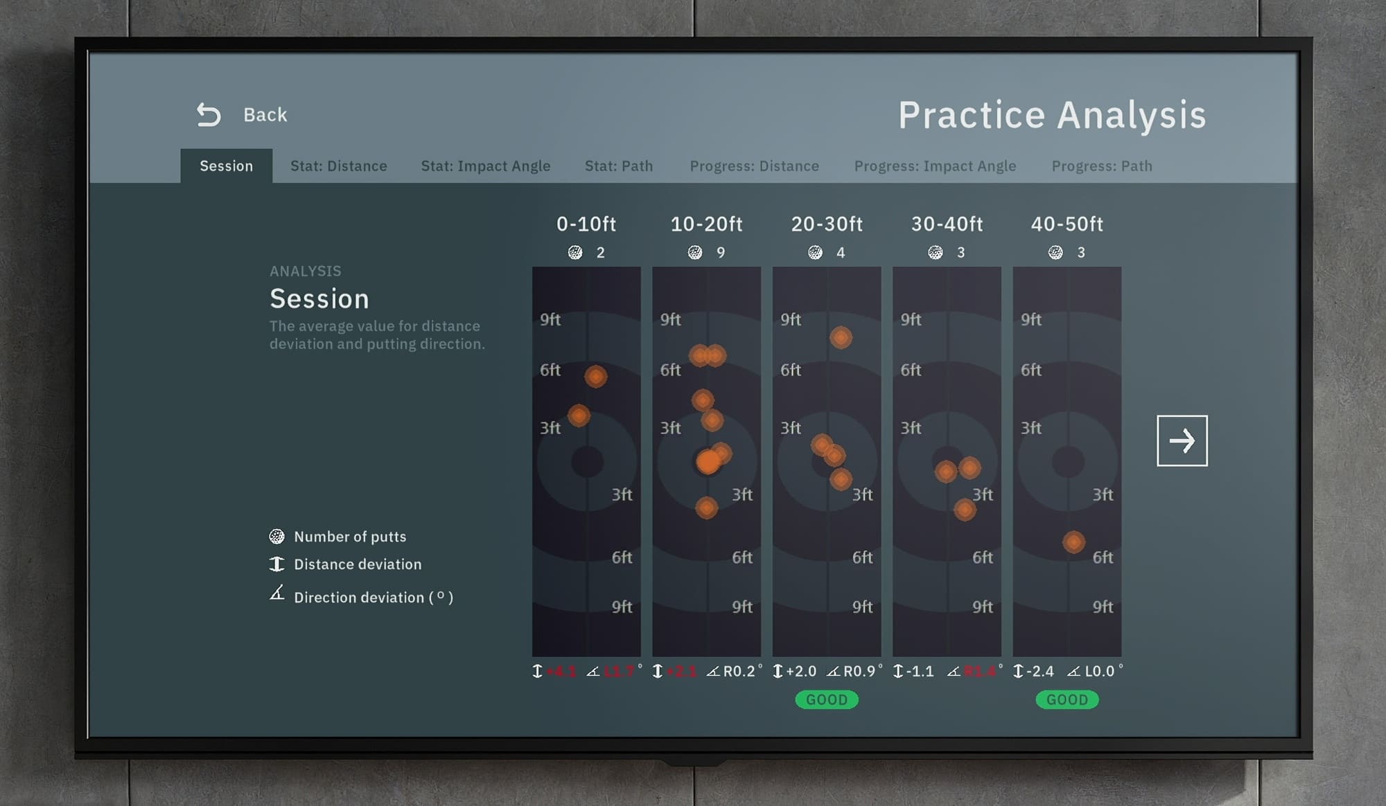 Explorer mode specifically helps you work on your weak putts. Select the pin and ball position, then recreate past putts on your favourite golf course.