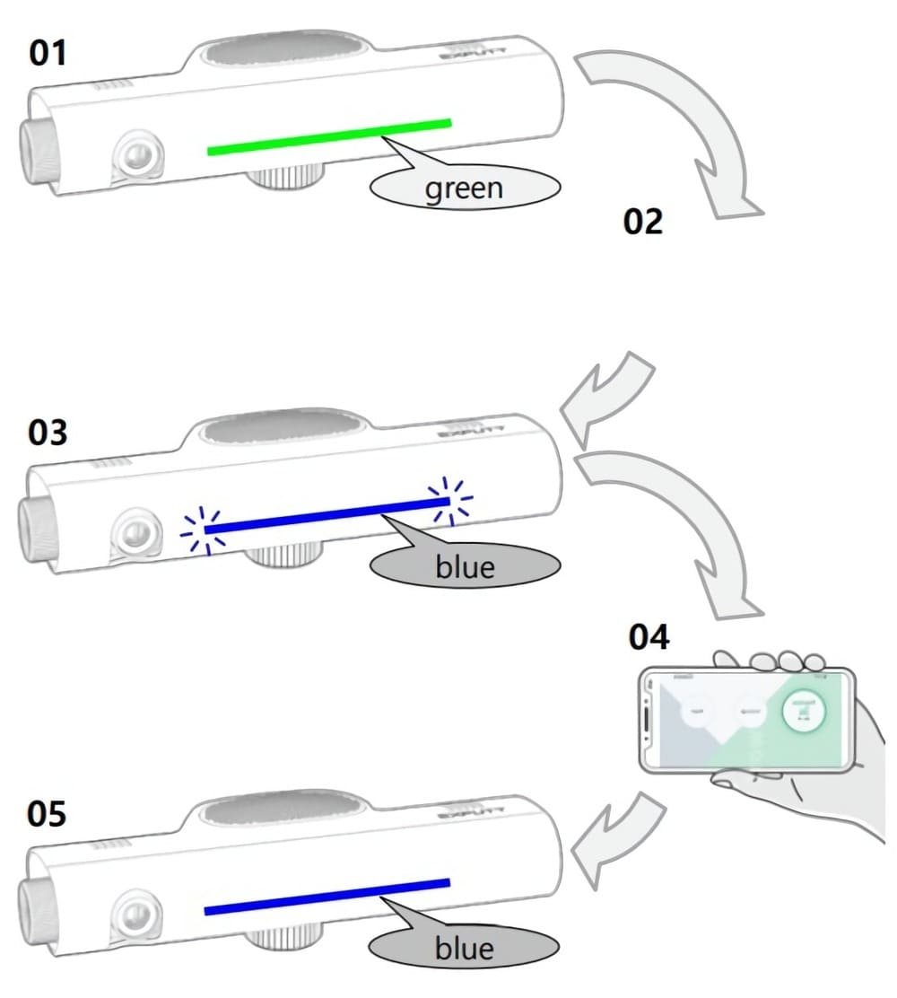 03 When the EXPUTT enters mobile mode, the LED on the front flashes blue.