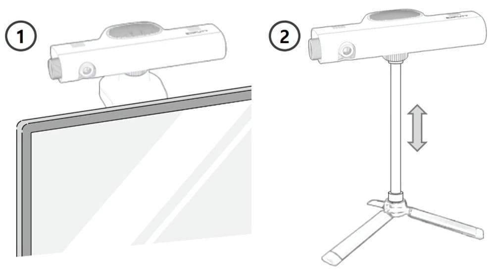 The installation location of the display device, can either be attached to the display device itself or used with a stand. Please choose the method that best suits your circumstances. The length of the tripod connection rod is adjustable.