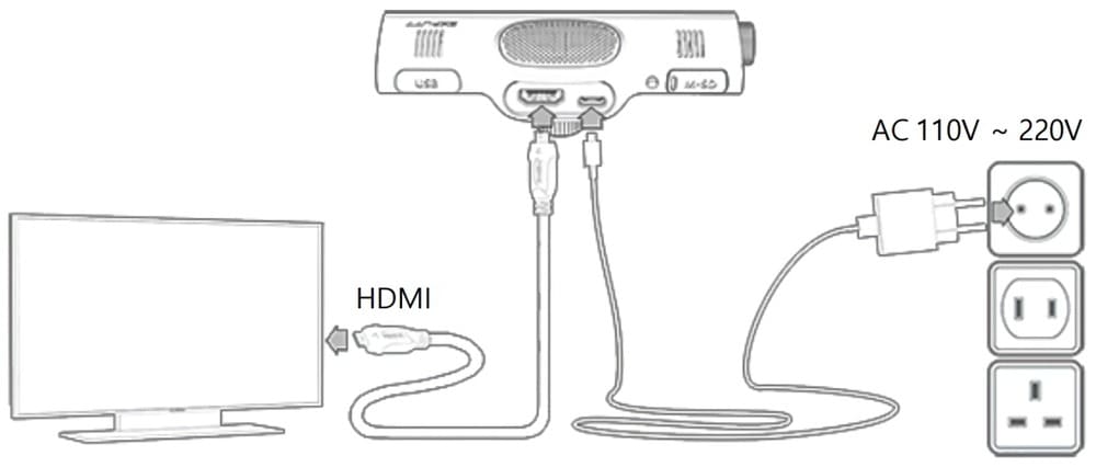 Connect the ExPutt camera to the TV using the HDMI cable and using the AC adaptor connect the ExPutt camera to the mains socket.