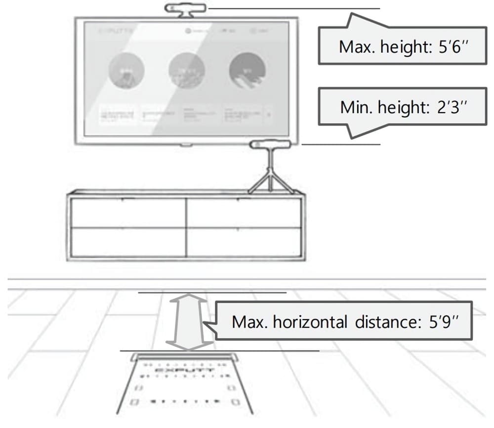 Install the ExPutt camera between 2.3ft (70cm) and 5.6ft (170cm). After installing the camera check the image on screen and ensure the mat fits entirely within the image.