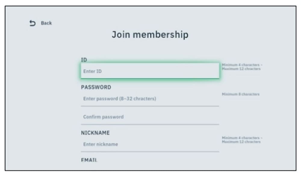 The image on the left is the image of the screen on which a new profile can be created. Please create a new profile by entering your ID, password, nickname, email, etc.